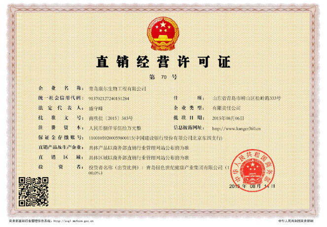 中国经济网北京12月25日电江西卫视《都市直播》栏目近日报道显示,南昌市徐先生表示,今年8月家人参加轻食分享会后,经常把“永春健”产品带回家。 “我打听了一下,发现他所在的项目公司叫康尔生物,他现在所在的团队叫凡盛系统。”先生说。徐。凡盛系统是一个分享经验、吸引线下加盟的发行集团。团队成员拥有下线后,前三代将直接赚取每个下线最低购买价的10%。从第四代开始,他们还可以获得不同比例的下线整体表现。您好,无限世代,无上限,目前最高等级为12级。青岛康尔生物工程有限公司客服热线表示,该公司是正规公司该公司拥有直销牌照,但并未直接回答该公司与凡盛系统之间的关系。今年9月,负责查处传销的市场监管部门回应称,目前尚无足够证据认定涉嫌传销,但可以认定其涉嫌无证经营、虚假宣传,并已展开调查。中国经济网记者致电青岛康尔生物工程有限公司了解详情。对方表示,目前尚不清楚具体情况,建议向相关人士询问。天眼查工商信息显示,青岛康尔生物工程有限公司成立于2000年,位于山东省青岛市。这是一家以食品生产为主的企业。公司注册资本8300万元,实收资本为8300万元。商务部直销行业管理平台信息显示,青岛康尔生物工程有限公司于2015年8月6日获批直销经营许可证。直销区域包括3家分公司(青岛康尔生物工程有限公司第一分公司、青岛康尔生物工程有限公司、青岛第一有限公司青岛康尔生物工程有限公司广州分公司)和30个服务网点。直销产品有2大类10种。 Norect销售培训师:1人(其中注册人员1人,未注册人员8人)。中国经