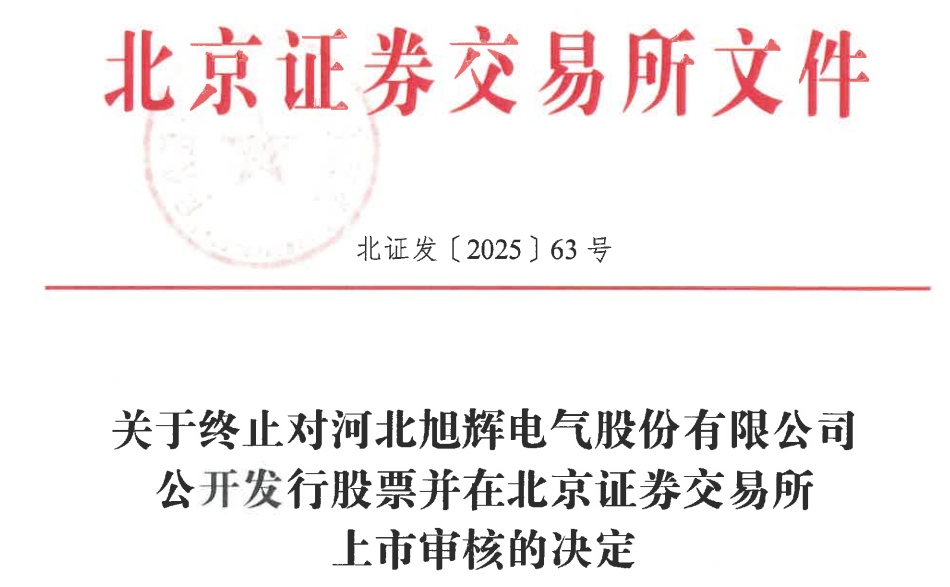 中国经济网北京11月15日电 北京证券交易所网站昨日披露,终止对河北旭辉电气股份有限公司(以下简称“旭辉电气”)在北京证券交易所公开发行股票并上市审核的决定。北京证券交易所于2023年12月22日受理了旭辉电气提交的公开申请的相关文件,并按照规定进行了审核。近日,徐汇电气向北京证券交易所提交了《河北徐汇电气股份有限公司撤回向不特定合格投资者公开发行股票并在北京证券交易所上市申请文件的申请》。根据《公开发行股票的办法》第五十五条的相关规定根据《北京证券交易所不特定合格投资者及上市审核规则》,北京证券交易所决定终止对旭辉电气公开发行股票并在北京证券交易所上市的审核。旭辉电气专业从事电网安全控制设备和电能质量优化管理设备的研发、生产和销售,是国内知名电力设备供应商。公司控股股东、实际控制人为张旭辉。截至招股说明书签署之日,张旭辉直接持有公司28.00%的股权。通过泰格投资间接控制公司16.33%的表决权股份。通过合营方李红艳、张曙光、张涛、张霞控制公司14.07%的股份,以及徐汇电气控制公司整体58.40%的表决权股份。原拟向北京证券交易所不特定合格投资者公开发行不超过4,250万股(不包括行使超额配售选择权发行的股份);不超过4,887.5万股(含行使超额配股权发行的股份)。银行股),公司及主承销商可以根据具体发行情况选择超额配售选择。本次超额配售股份数量不超过本次发行股份数量的15%(即不超过637.5万股)。徐汇电气原计划募集资金30,619.69万元,将用于智能电气装备工厂建设项目、徐汇电气研发中心建设项目以及增加流动资金。徐汇电气本次保荐机构为国联民生证券承销保荐有限公司,保荐代表人为马骏、沉百强。