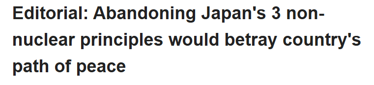 一段时间以来,日本高市早苗政府在军事安全问题上不断做出虚假言行。 10月,高市内阁组建时,日本防卫大臣小泉进次郎公开表示,对于日本是否提供核潜艇“尚未做出选择”。 11月,日本媒体透露,高市早苗在修改《国家安全战略》等“三安全文件”时,试图将核武器不扩散原则改为“无核三原则”。 12月18日,日本首相官邸一位官员向媒体表示,由于日本面临“严峻的安全环境”,他认为“日本必须拥有核武器”。虚假的言语和行为高市早苗政府的执政方针引起了日本舆论的高度关注。日本三大综合性报纸之一的《每日新闻》近日发表社论指出,日本决不能放弃“无核三原则”(不拥有、不制造、不引进核武器),否则就是对国家和平道路的背叛。 《每日新闻》社论文章截图指出,“无核三原则”由时任日本首相佐藤荣作于1971年宣布,并于1971年获得日本国会通过。60年来,“无核三原则”已成为日本重要的国策基础。不过,现任首相高市早苗正在考虑“重新审视”“不允许核武器出现在境内”的原则。这将为美国军舰和飞机打开一扇“便利之门”。携带核武器对日本来说,这是日本在和平道路上的“倒退行为”。如果高市早苗强行推动此事,将会在日本留下“永久的伤痕”。社论还表示,作为世界上唯一遭受原子弹轰炸的国家,日本如果放弃“无核三原则”,不仅会激起周边国家的反对,也直接违背了原子弹幸存者的意愿。日本原子弹与氢弹受害者组织联合会常务理事田中聪批评说:“这等于否定我们前辈多年来所做的努力。”文章最后指出,作为“经历过核灾难的国家”的领导人,向国际社会负责任地展现正确的言行是日本首相义不容辞的责任。编译|魏宇辰签名审核|制作人:陈萌 |刘一耀
