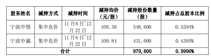 中国经济网北京12月24日电 中融电气(301031.SZ)昨晚披露了《控制人实际一致行动人减持计划实施完毕的公告》称,中融电气于2025年10月13日披露了《股东持股信息披露新年报告中预披露的控制人一致行动人减持计划。持有公司股份5,792,720股(占公司总股本5.9073%),宁波中誉自有资本投资合伙企业(有限合伙)(以下简称“宁波中誉”),原名永春中誉企业管理咨询合伙企业(有限合伙)。宁波中盈自有资本投资合伙企业(有限合伙)(以下简称“宁波中盈”),股东持有公司股份4,551,001股(占公司股份的4.6410%)。公司总股本),前身为永春中盈企业管理咨询合伙企业(limi)。拟自公告之日起15个交易日后3个月内,通过集中竞价或交易封锁方式减持公司股份总数不超过97.96万股(占公司总股本的0.9990%)。公司近日收到宁波中誉、宁波中盈出具的《关于减持计划实施完毕的通知函》。 2025年12月23日,两家公司实施并完成了减持计划。 11月6日至12月22日,宁波中宇通过集中竞价方式减持54.86万股,均价109.38元/股,占总股本的0.5594%;宁波中盈通过集中竞价减持43.1万股,均价109.84元/秒野兔,占总股本的0.4395%。按前述平均降价计算,宁波中誉、宁波中盈此次降价套现约1.07亿元。中融电气2025年半年报显示,宁波中誉持有公司5.89%股份,实际控制人之一方广文担任其执行合伙人。宁波中盈为公司股东,持有公司4.63%股份,实际控制人之一方广文担任执行合伙人。 2021年7月15日,中融电气在深圳证券交易所创业板挂牌上市,公开发行1657万股,发行价格26.78元/股。保荐机构为中原证券股份有限公司,保荐代表人为颜智慧、刘俊峰。中融电气本次发行募集资金总额为4.44亿元。扣除发行费用后的净额募集资金3.96亿元。中融电气最终净募集资金比原计划增加3385.32万元。中融电气2021年7月2日发布的招股书显示,公司拟募集资金3.62亿元,将用于智能电气产业基地建设项目、研发中心建设项目以及补充流动资金。中融电气发行费用总额为4756.09万元,其中保荐人中原证券有限责任公司收到2721.2万元,中天云会计师事务所(特殊普通合伙)收到审计验资费780万元,上海锦天城律师事务所收到780万元。获得律师费710万元。