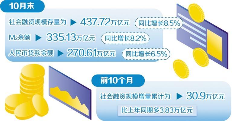 广义货币(M_2)和社会融资增速保持较高水平,信贷结构持续优化,贷款利率保持较低水平……今年以来,适度宽松的货币政策持续实施,有力支撑了经济复苏。下一步,货币政策将继续发力,把握力度和速度,保持对实体经济的有力支持。提高金融支持质量和效率 “十五五”规划提出实施更加积极的宏观政策,继续稳增长、稳就业、稳预期。今年以来货币适度宽松y政策已生效。金融总量快速增长。截至10月底,社会融资存量437.72万亿元,同比增长8.5%;前10个月社会融资累计增量30.9万亿元,比去年同期多3.83万亿元。与此同时,货币供应量保持较快增长。截至10月末,M_2余额335.13万亿元,同比增长8.2%。截至10月末,人民币贷款余额270.61万亿元,同比增长6.5%。 “金融总量合理增长为实体经济提供了有力支撑。”东方金城首席宏观分析师王庆表示。在适度宽松的货币政策推动下,社会融资综合成本持续下降,为企业实体纾困提信心。最新数据显示,新公司加权平均利率10月份贷款利率(本外币)为3.1%,较去年同期下降约40个基点;个人住房加权平均利率(本外币)为3.1%,比去年同期下降约8个基点。 “十五五”规划提出加强财政货币政策协调,因为它创造了“1+1>2”效应,共同支持稳定增长和结构调整。中国人民银行发布的《2025年第三季度中国货币政策执行报告》(以下简称《报告》)强调,要灵活把握公开市场操作的力度和节奏,立即平滑财政税收、国债发行等短期波动因素。数据显示,2024年中国债券净融资规模将达到11万亿元,今年有望突破12万亿元。中央银行综合政策保持资金稳定,有力支持国债有序发行。在促进事业单位金融结构优化和资本补充方面,货币政策与财政政策的协同效应是众所周知的。例如,财政部门对部分金融政策工具贴息、消费贷款贴息等的支持,以及地方政府和财政的激励、融资担保等机制,有力地加强了财政资金与信贷的协调配合,促进了社会融资综合成本的企稳和下降,支持经济结构调整和转型升级。今年,财政部门与央行联手发行5000亿元特别国债,增加国有大型银行资本金,增强银行融资能力o 支持维护实体经济、防范金融风险。我们将认真做好“五大文章”,提出“十五五”规划建议,大力发展科技金融、绿色金融、普惠金融、养老金融、数字金融。 《报告》显示,9月末,支持金融“五大文章”的金融结构政策工具余额接近4万亿元。民生银行首席经济学家温斌表示,扎实做好金融“五项基本文章”、释放消费潜力,是增强经济增长动能、推动高质量发展的重要方向。这是落实“十五五”规划建议、建设金融强国的必然要求。这也将是未来财力继续倾斜的领域。中央的结构工具主要鼓励和引导金融机构支持国家重大战略、经济社会发展重点领域和薄弱环节。这些领域社会资金初始进入意愿较低,需要央行资金尽早进入并发挥引导作用。近年来,人民银行不断丰富工具箱,充分发挥金融政策工具数量和结构的双重功能,持续引导金融机构提高金融产品和服务适应性,促进经济结构转型升级。特别是围绕做好金融“五项基本文章”和支持扩大内需的要求,加大信贷资源投向国民经济关键战略、重点领域和薄弱环节,促进金融与实体经济良性互动。时间数据显示,当前金融“五大文章”相关领域贷款增速超过10%,高于全部贷款增速。其中,养老行业贷款增速接近60%。同时,涵盖的主题范围更加多样化。 9月末,小微贷款金额同比增长12.2%,森林抵押贷款同比增长14.9%。增速分别高于全部贷款5.7和8.4个百分点。 “科技自力更生、自力更生水平显着提高”被列入“十五五”经济社会发展主要目标之一,并将成为未来财政支持的重点和主线。 《报告》显示,9月末,本、外币小科技贷款同比增长22.3%比全年贷款增速高出15.8个百分点。超过一半的科技型中小企业获得了贷款。科技贷款占新增贷款的30%以上。科技创新和技术改造贷款合同金额2.6万亿元,发放贷款1.1万亿元。债券市场“科创板”为股债融合提供了有力支撑,推出6个月以来取得积极进展。中国银行间市场交易商协会市场创新部部长杜海军表示,截至11月21日,银行间市场支持276家企业发行科技债5346亿元。发行规模占同期银行间市场债务融资工具总发行规模首次超过10%较发行前提升5个百分点。政策的影响将持续显现。总体来看,适度宽松的货币政策效果正在逐步增强。支持实体经济的效果将逐步显现。近年来,我国社会融资规模和M_2增速普遍保持在8%以上,高于同期名义GDP增速约4个百分点。社会融资成本持续走低,利率低于潜在经济增长率5%左右。温斌表示,从量和价两个维度看,当前我国货币政策立场是支持性的,为推动物价合理回升创造了适宜的财政金融环境。还应该看到,根据理论和国际实践经验,货币政策通常存在一定的滞后时间。去年,中国人民银行实施了四轮规模较大的货币政策调整。今年5月,央行推出一揽子货币政策措施。这些政策的效果将不断显现,政策的积极效应将不断积累。尽管财政政策仍有一定空间,但边际效率已明显下降。下一步,我们要继续实施适度宽松的货币政策,把握好力度和节奏,保持对实体经济的有力支持。关于下一阶段货币政策的主要思路,《报告》明确,人民银行将实行适度宽松的财政政策,保持社会融资条件宽松。对于未来的政策调控,央行仍然强调短期与长期、稳增长